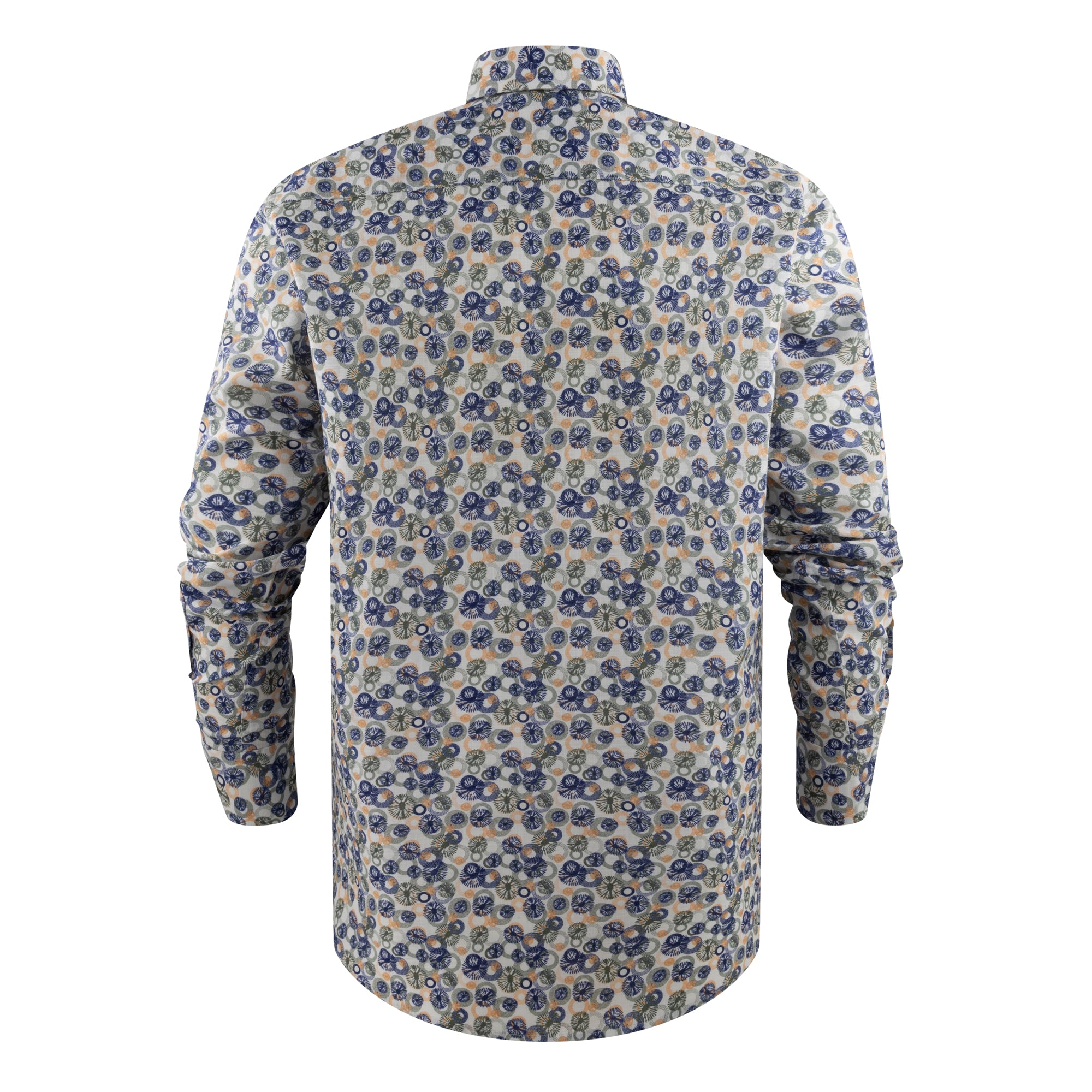 Camisa estampada con efecto lino. Confeccionada en tejido 100 % algodón. Su corte regular fit la hace más amplia, lo que favorece la comodidad y el movimiento. Entre sus detalles de estilo presenta contraste en el cuello y los puños, bolsillo en el pecho, logo bordado de Baileys y cuello button-down.